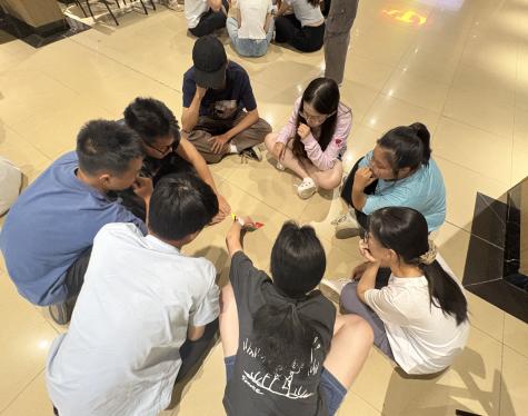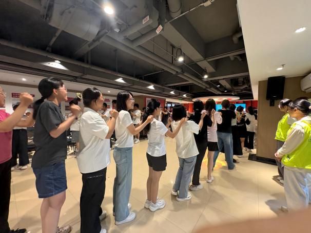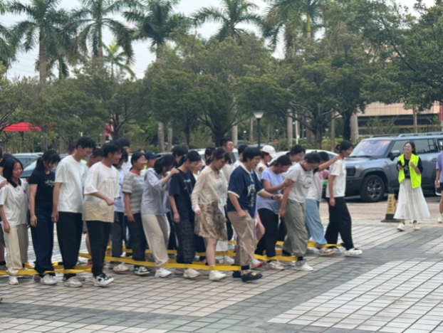 接着,正式进入到团辅体验环节。“相识接龙”和“同心圈”环节体验让新生们快速打破初相识的尴尬,更好地熟悉了解彼此;在“T字之谜”的探索中,大家通过色块拼接完成T字拼图的过程收获到了“懂得如何解决困难问题”的欣喜和满足;而“巨人脚步”的环节体验更像是一场摇摇晃晃的团队狂欢,一开始的东倒西歪,在齐心协力的磨合下,被更加坚定协调的步伐取代。“一二一!一二一!左右左!左右左!”每一步都是默契的共鸣。