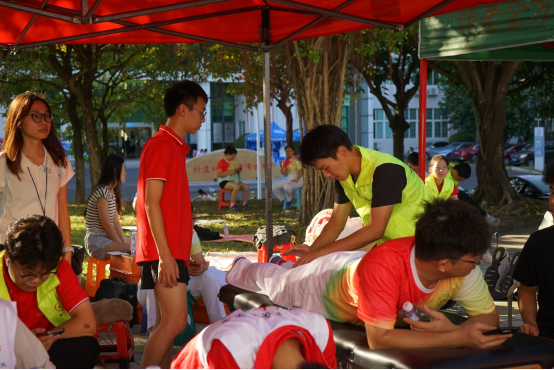 赛场之外,幕后工作人员始终默默坚守!他们有条不紊地保障着赛事的顺畅进行,更在一旁支起临时推拿点,以专业手法为刚结束比拼的运动员舒缓筋骨、缓解疲劳,用无声的付出与温暖,为每一份拼搏全力保驾护航!